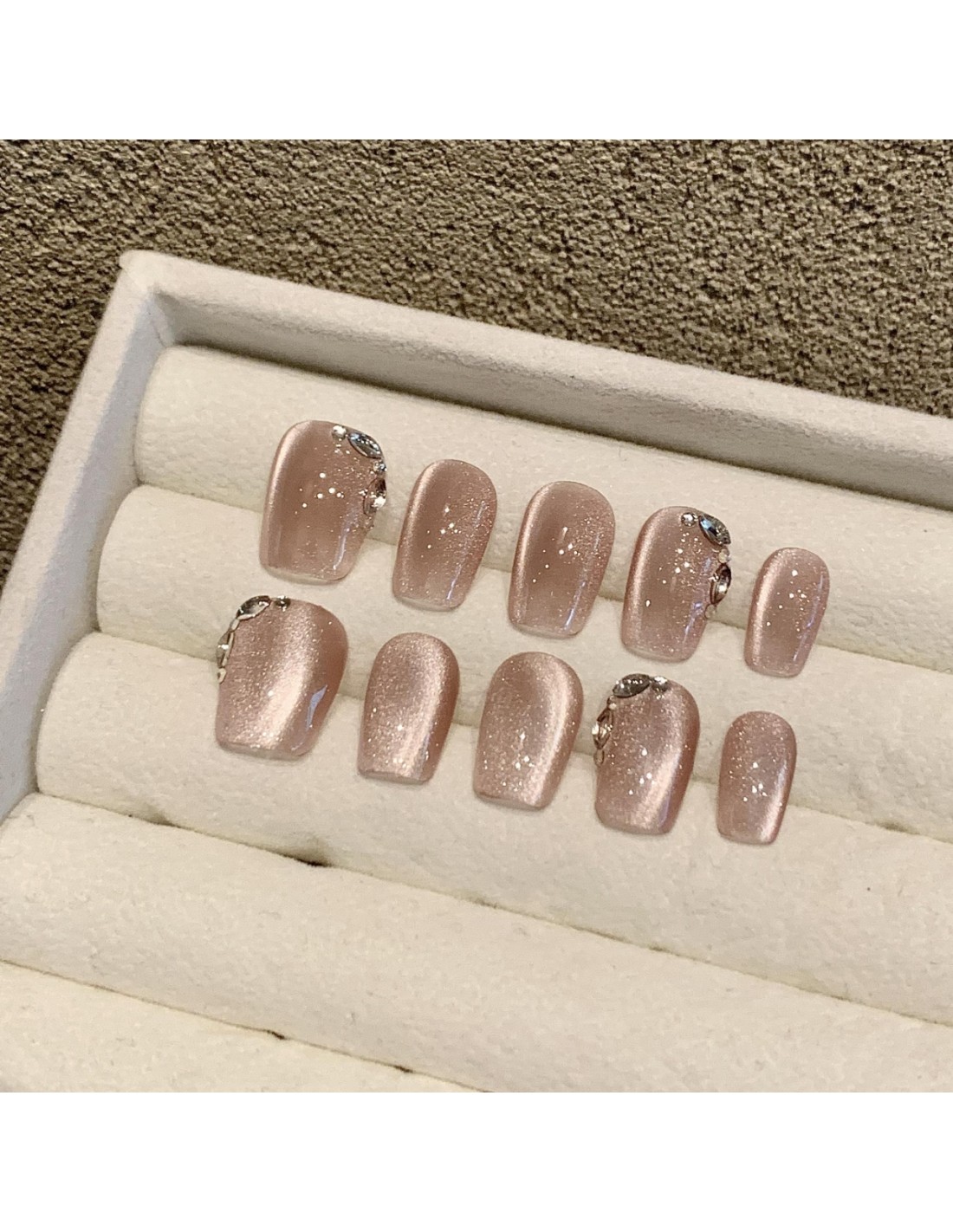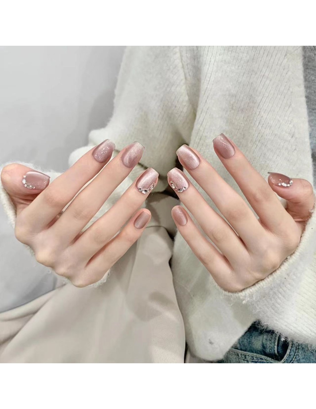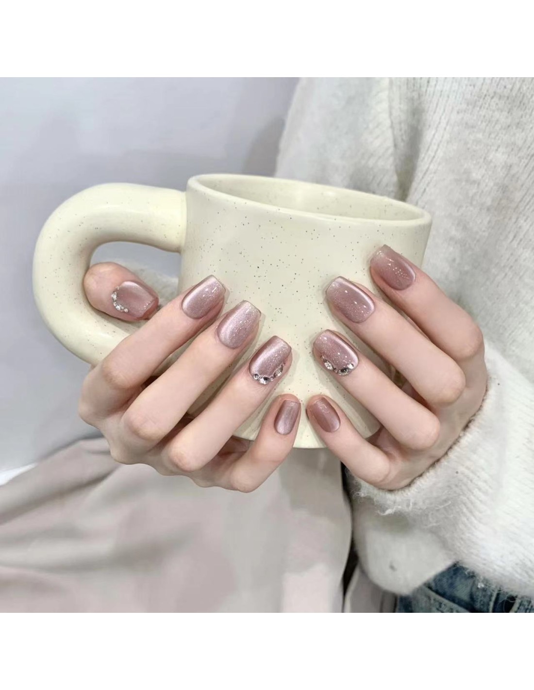 Aporta un toque de elegancia sutil a tu manicura con este set de uñas postizas press on hechas a mano en un delicado tono rosa claro. Su diseño minimalista se embellece con una fina línea de cristales blancos que añade brillo y distinción sin perder naturalidad. Con forma cuadrada corta, estas uñas ofrecen comodidad y estilo, siendo perfectas para uso diario o para realzar tu look en ocasiones especiales. Incluyen pegatinas adhesivas para una aplicación rápida y segura, y son reutilizables para que puedas lucirlas en más de una ocasión.