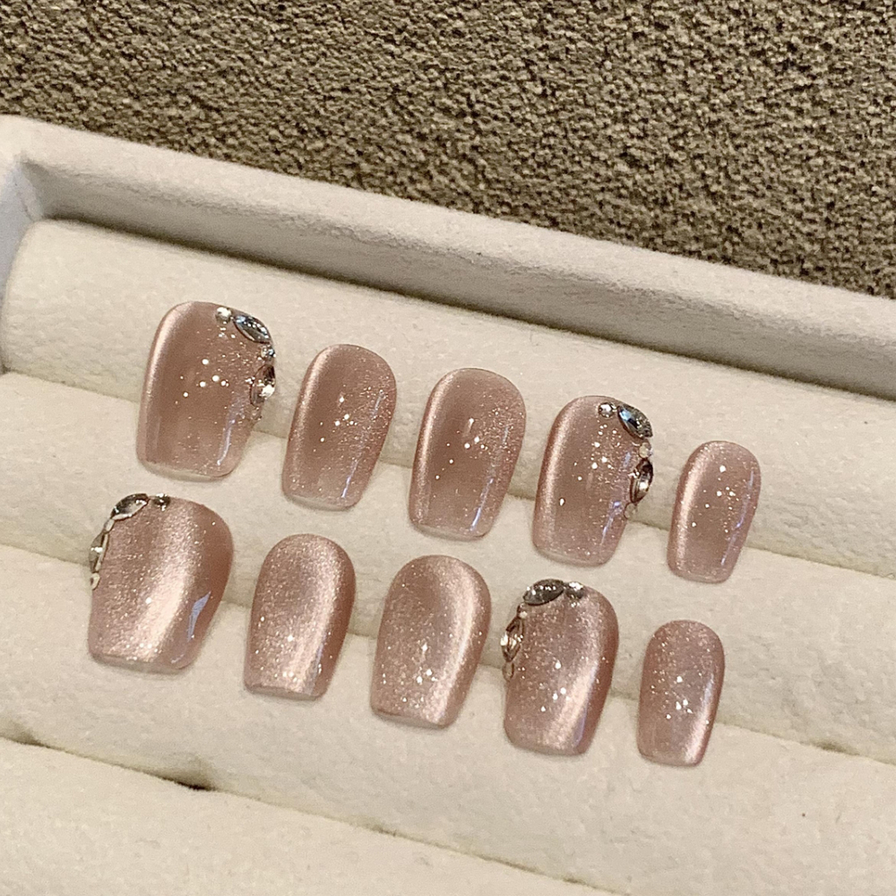 Uñas Postizas Press On Rosa Claro con Cristales – Sutileza y Elegancia Natural