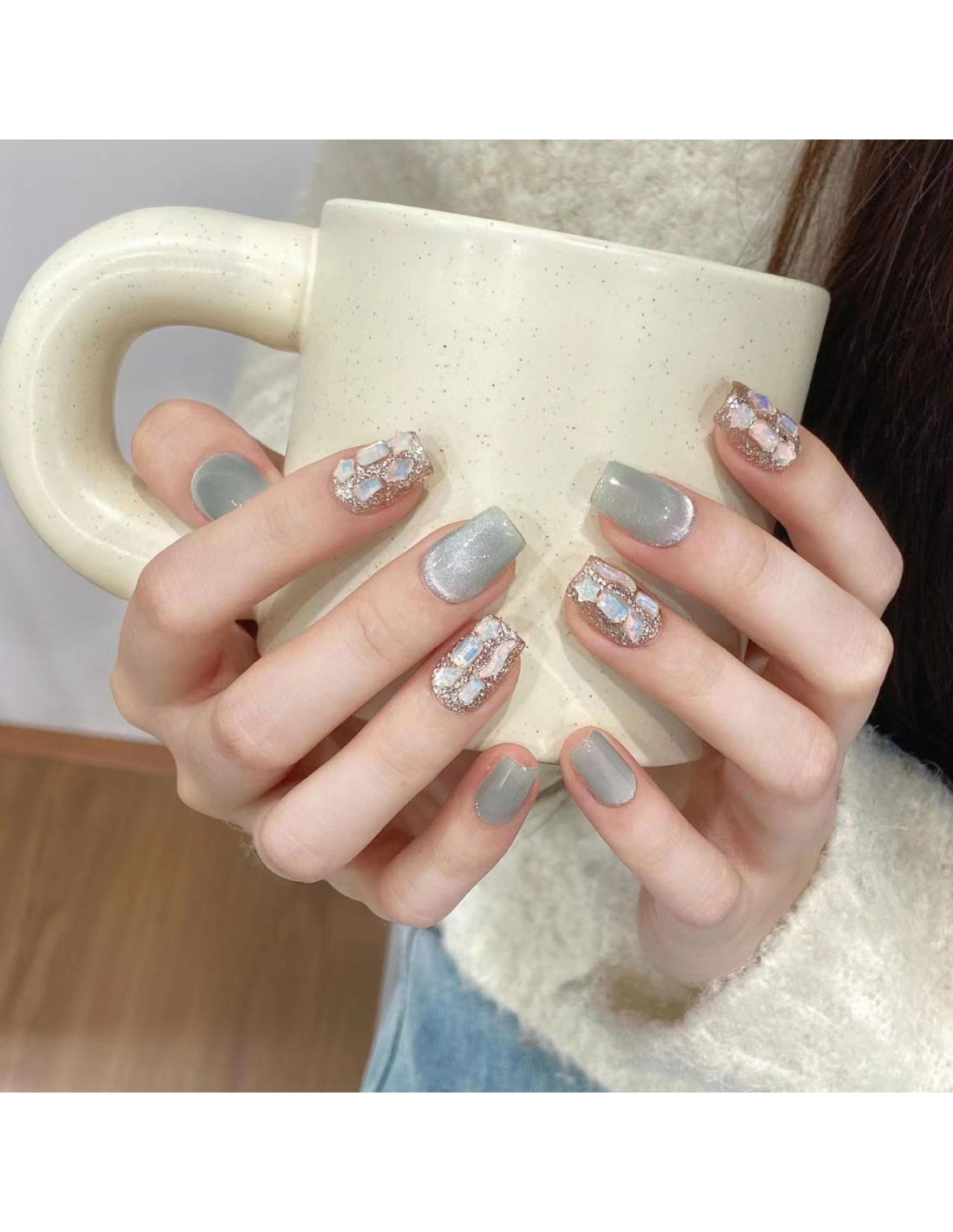 Dale a tu manicura un toque elegante y único con este set de uñas postizas press on hechas a mano en un sofisticado color verde oliva. Su efecto ojo de gato crea reflejos hipnotizantes que cambian con la luz, mientras que los detalles de cristales y pedrería aportan un acabado glamuroso y lujoso. Con largo corto para combinar comodidad y estilo, estas uñas reutilizables incluyen pegatinas adhesivas para una aplicación rápida y sin complicaciones. Perfectas para uso diario, fiestas o citas especiales, este kit de manicura te permite lucir uñas impecables y profesionales en minutos.