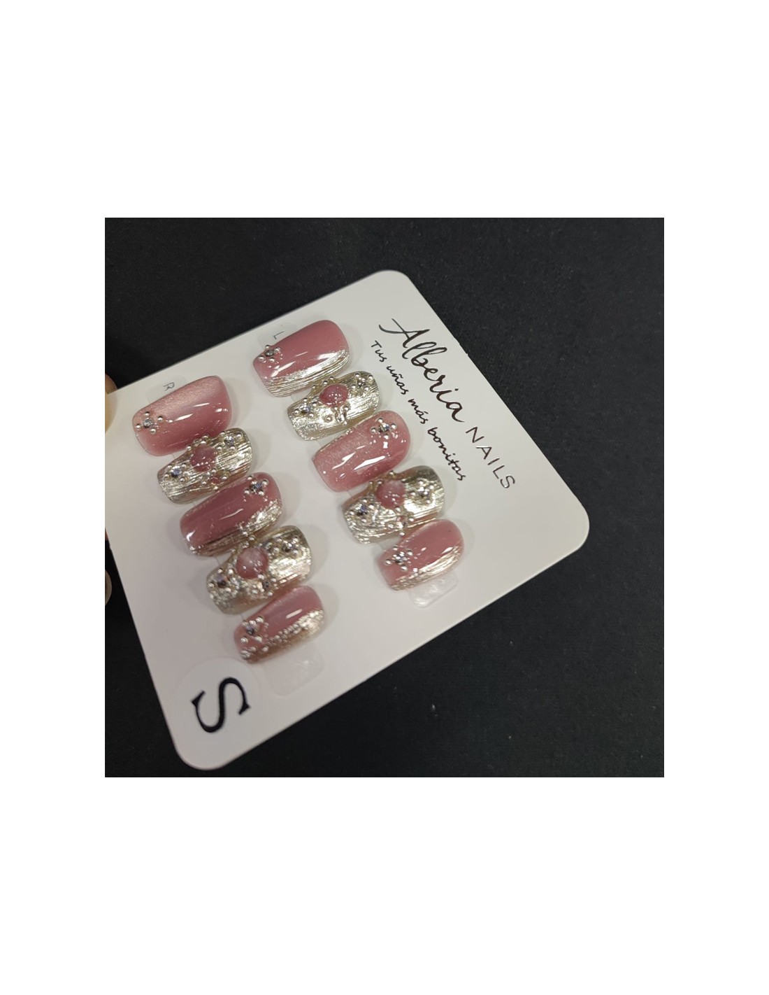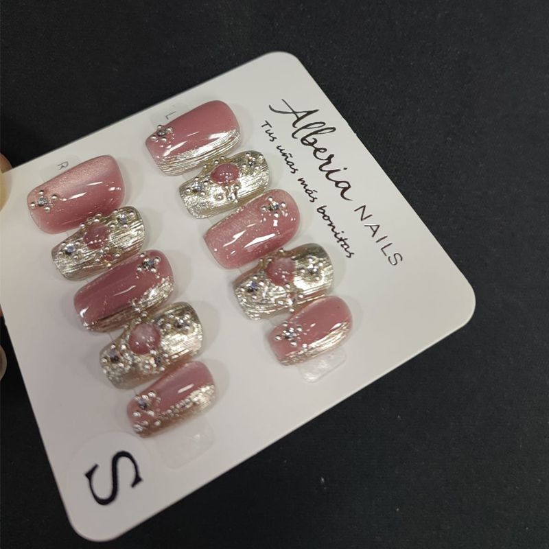 Set Uñas Postizas Press On – Rosa Claro con Cristales y Detalles Metálicos