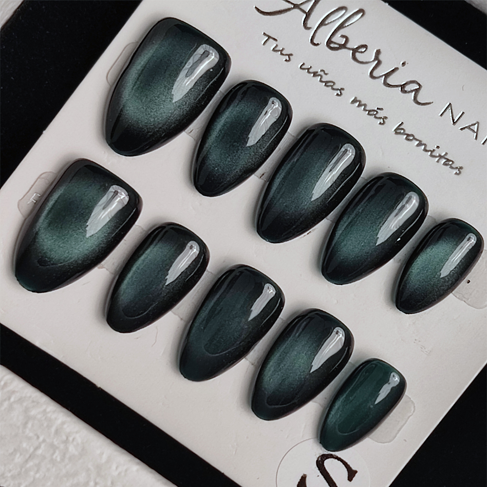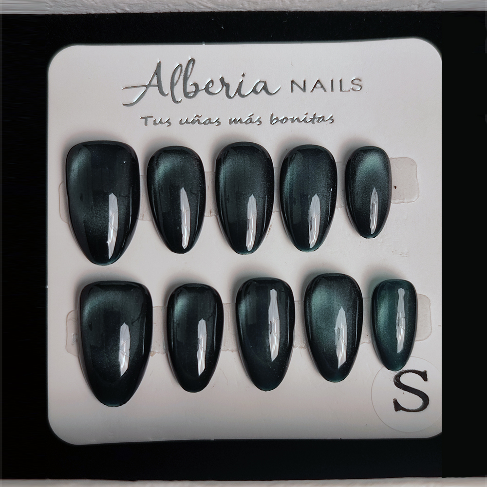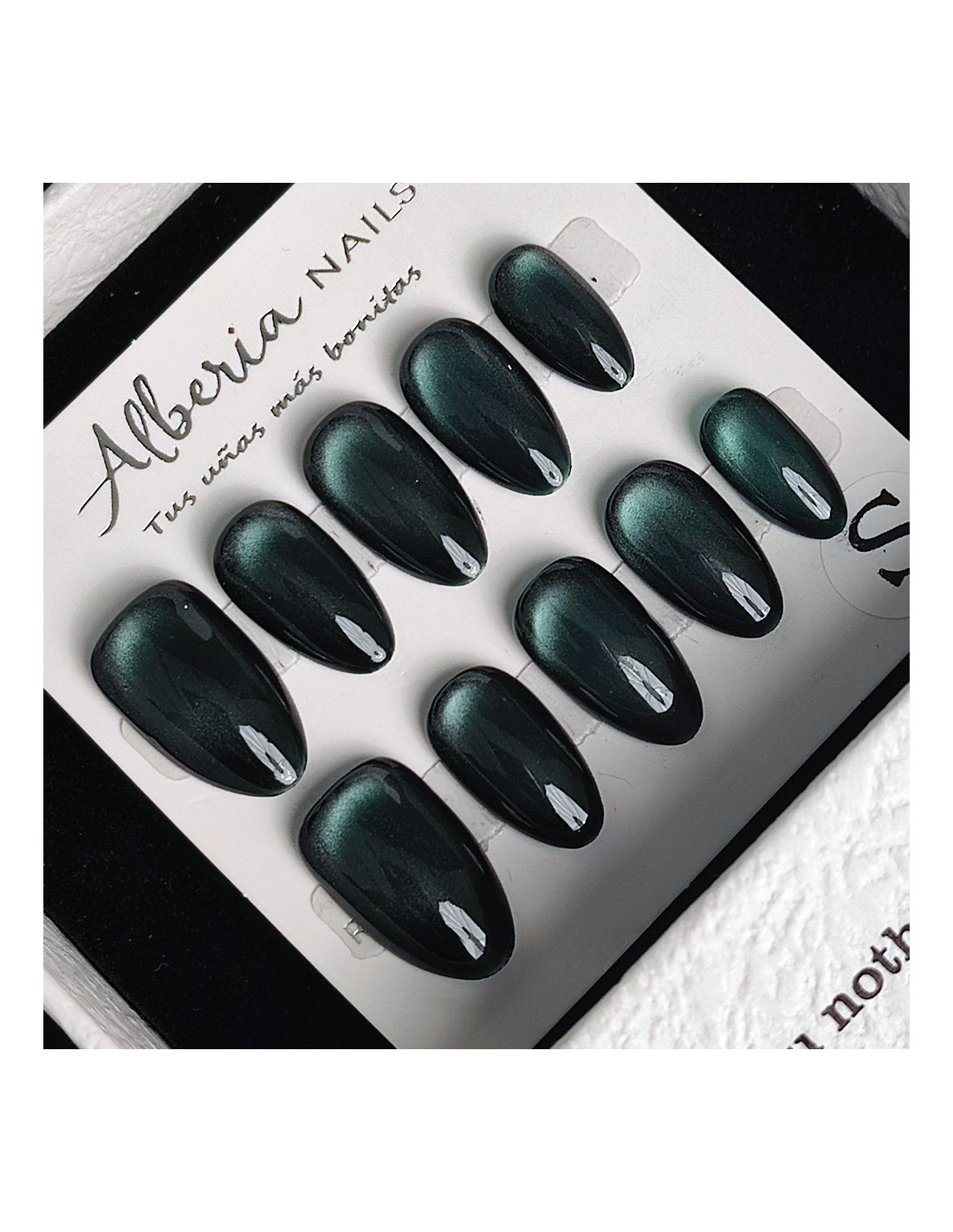 Descubre nuestras uñas press on en tono azul profundo inspirado en el fondo del océano, un diseño elegante y misterioso que evoca la belleza del mar en su máxima profundidad. Su acabado intenso y luminoso crea un efecto sofisticado que cambia con la luz, aportando un look moderno y llamativo.