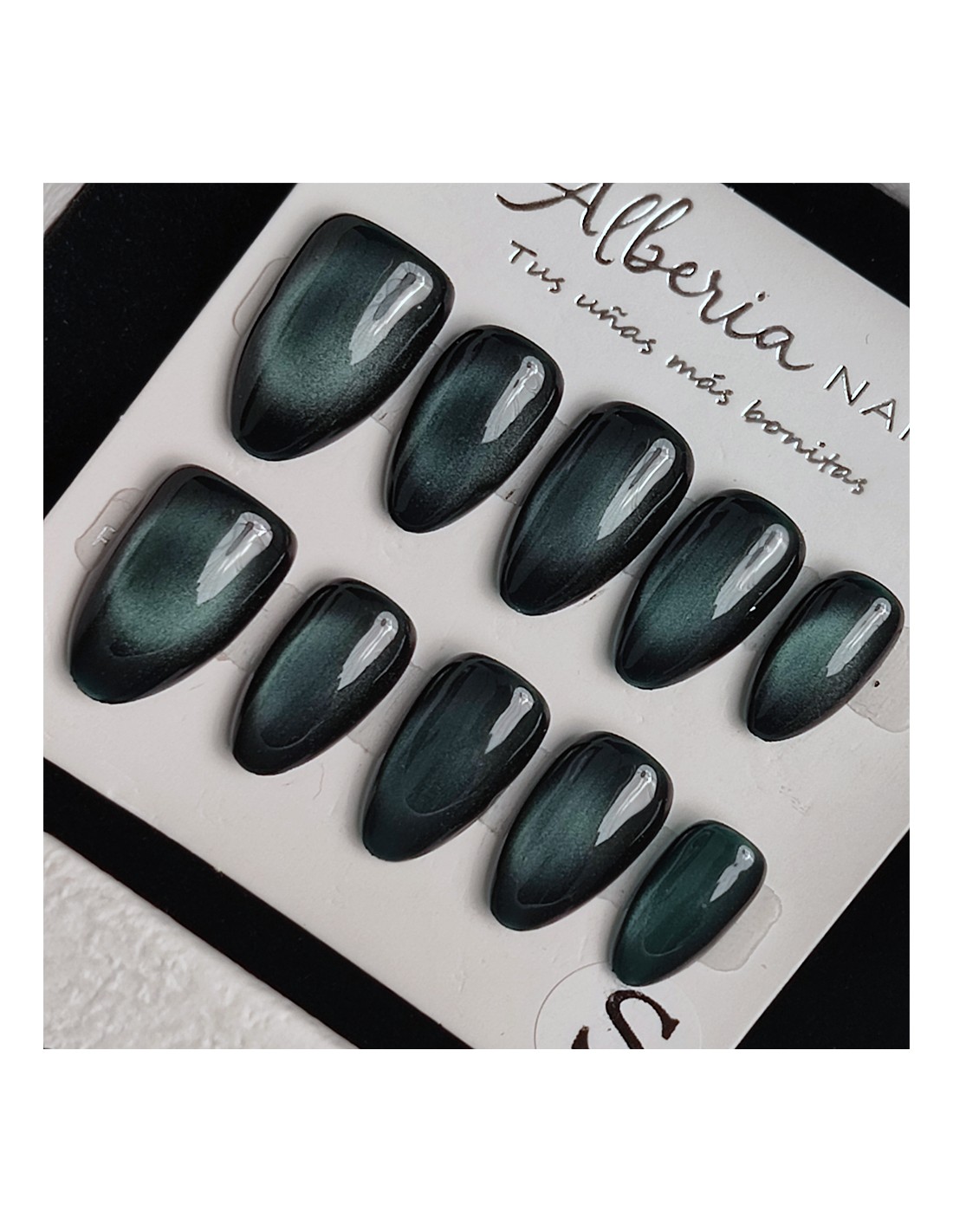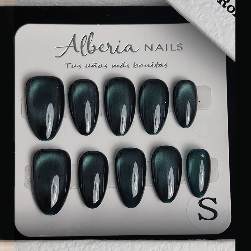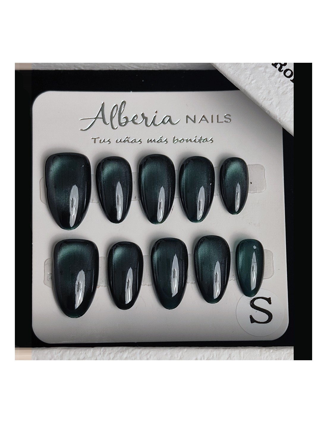 Descubre nuestras uñas press on en tono azul profundo inspirado en el fondo del océano, un diseño elegante y misterioso que evoca la belleza del mar en su máxima profundidad. Su acabado intenso y luminoso crea un efecto sofisticado que cambia con la luz, aportando un look moderno y llamativo.