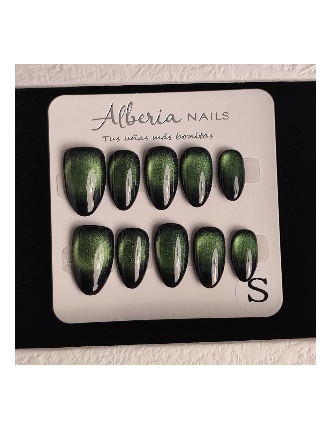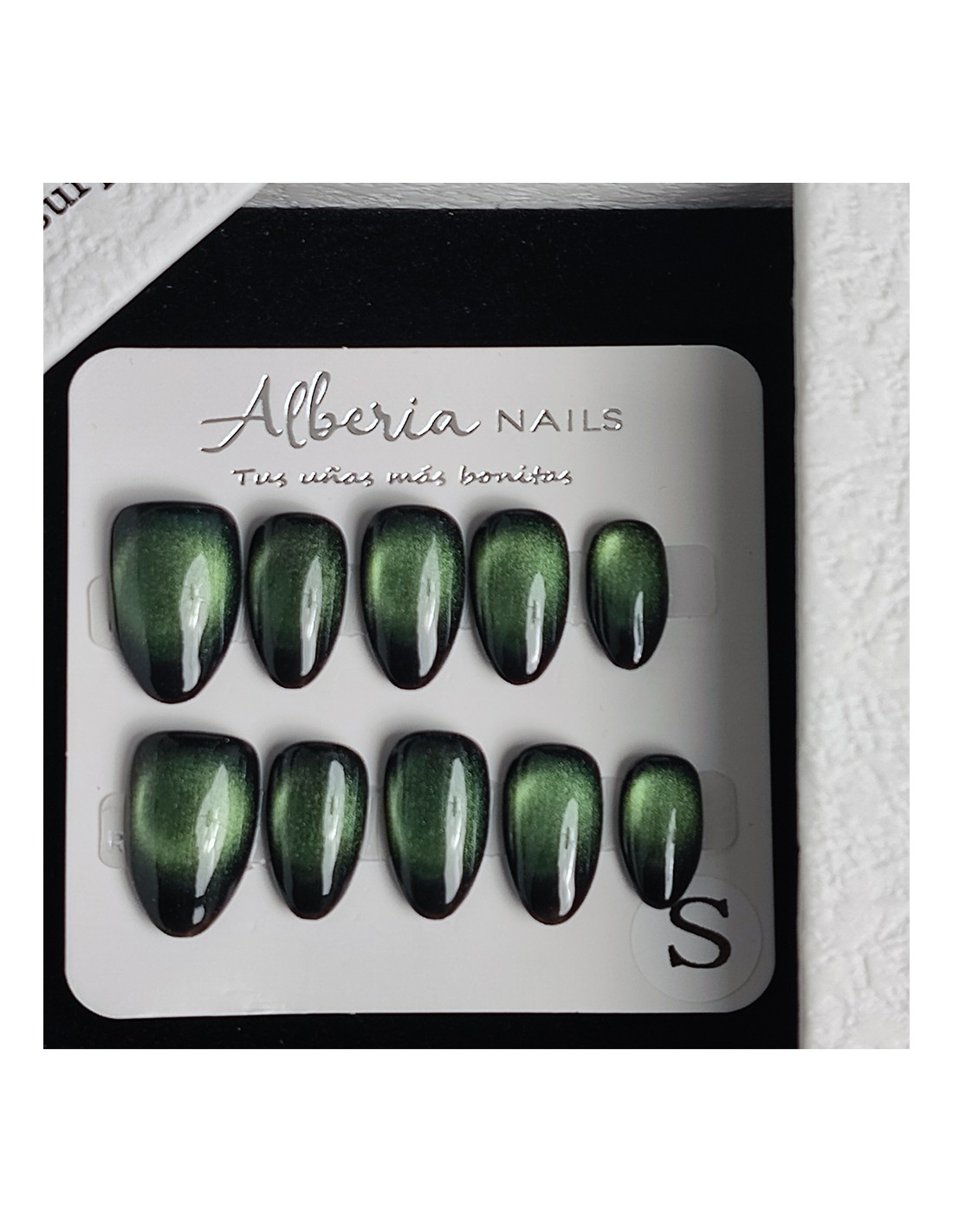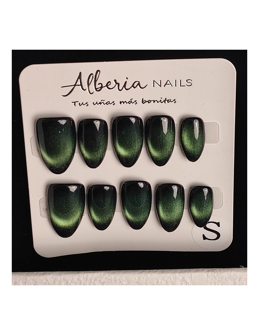 Descubre nuestras uñas press on de forma almendrada color verde un diseño elegante y atemporal inspirado en los tonos verdosos. Su efecto crea un acabado sofisticado y único, perfecto para quienes buscan un estilo clásico con un toque moderno.