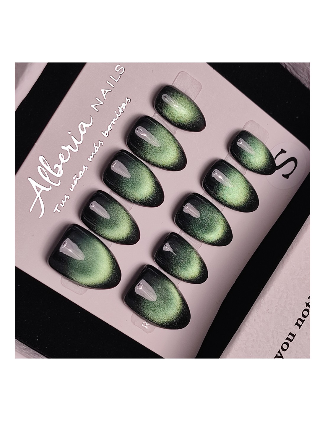 - Set de uñas postizas press on hechas a mano en color verde