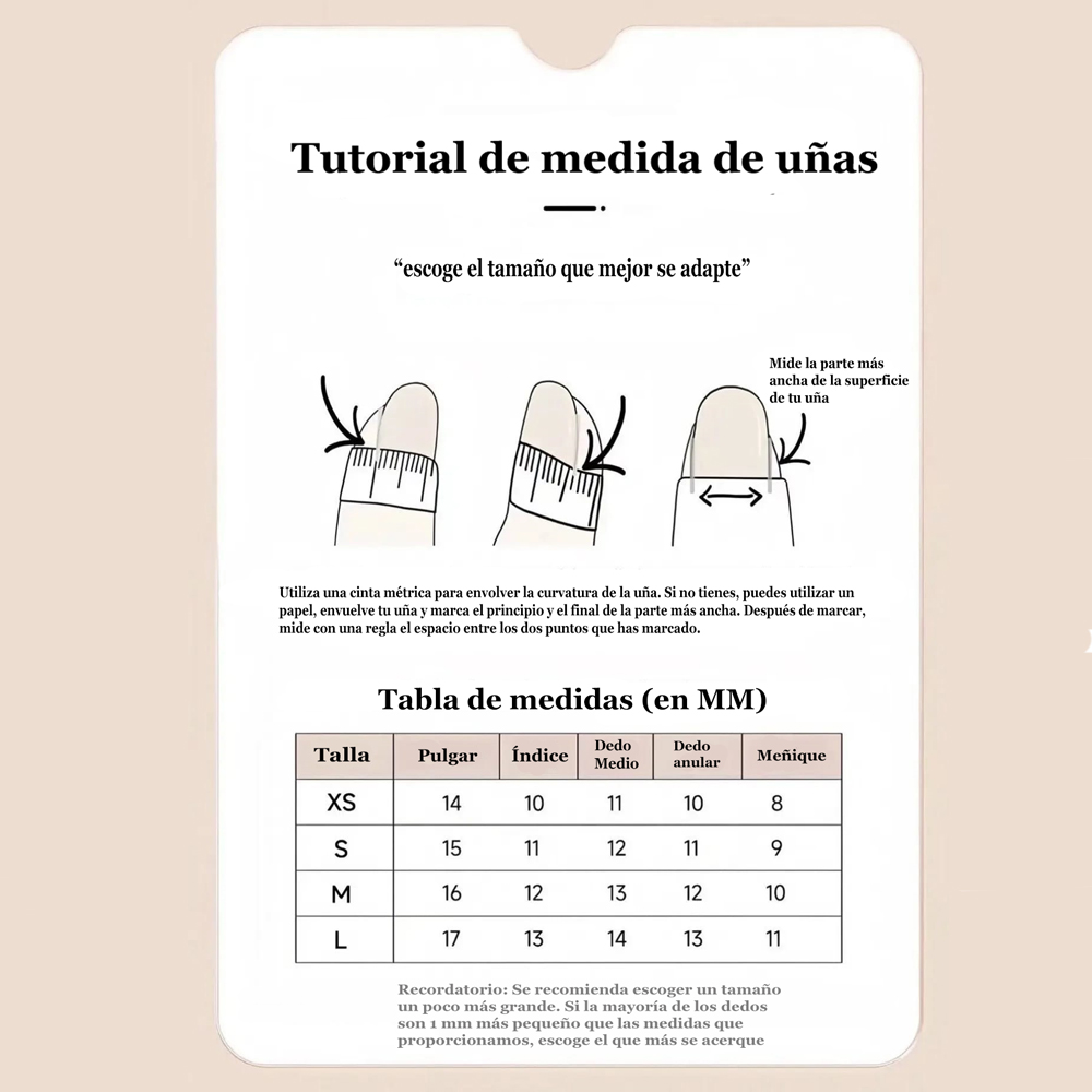 - Elige y pega: selecciona la uña del tamaño adecuado.