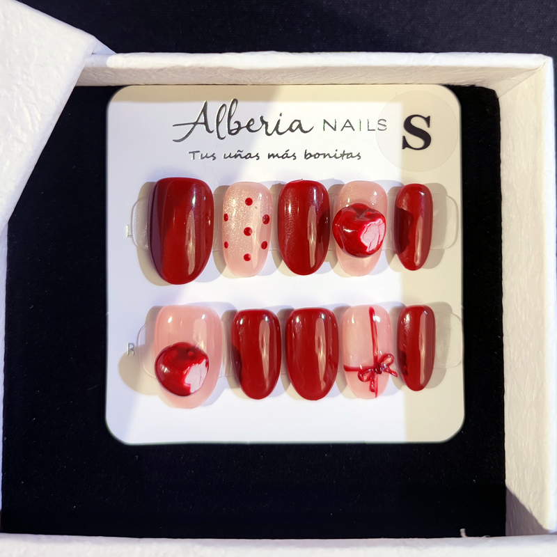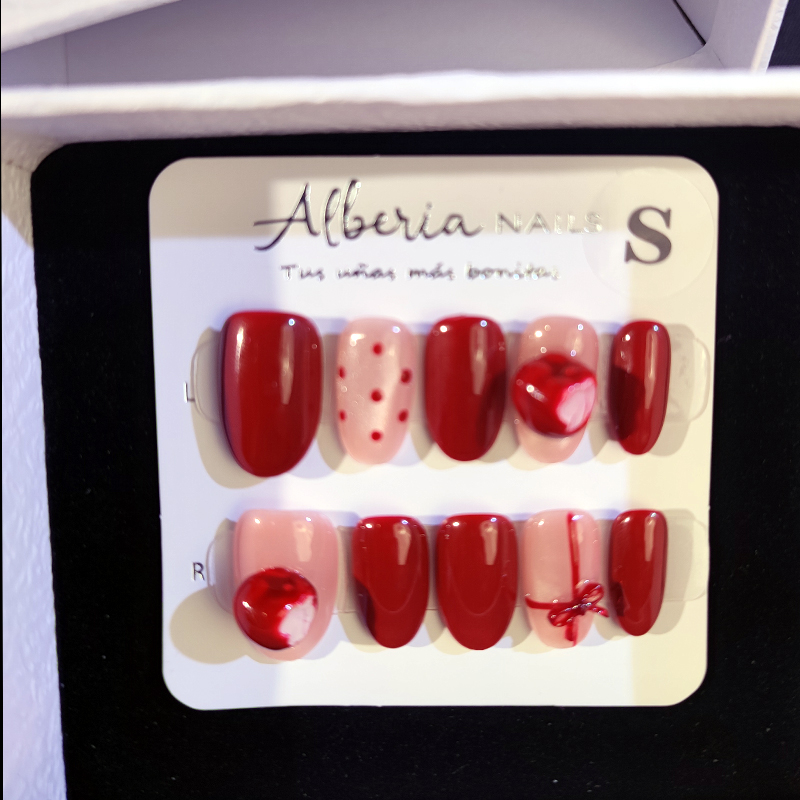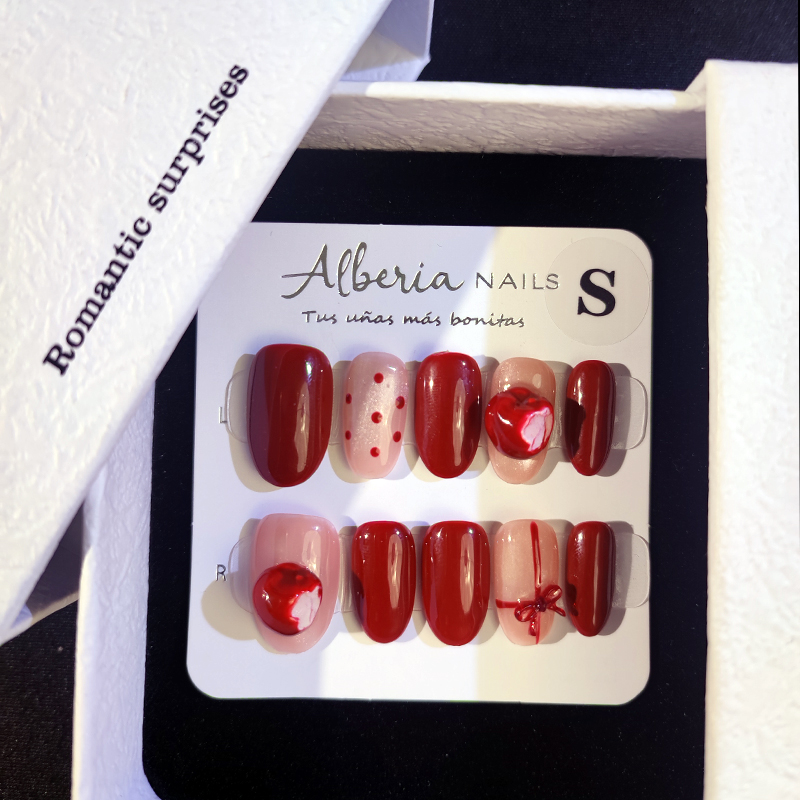 Dale un toque original y juguetón a tu manicura con nuestras uñas postizas press on rojas con diseño de manzana mordida, un estilo único que combina color, creatividad y un toque irresistible de fantasía. El color rojo intenso aporta un look llamativo y elegante.
