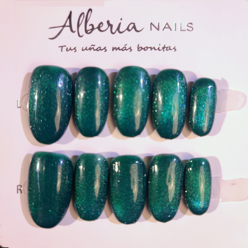 Perfectas para eventos especiales, fiestas, sesiones de fotos o uso diario, estas uñas verde esmeralda aportan un estilo vibrante, elegante y sofisticado, convirtiéndose en un accesorio imprescindible para quienes buscan un look impactante y lleno de personalidad.