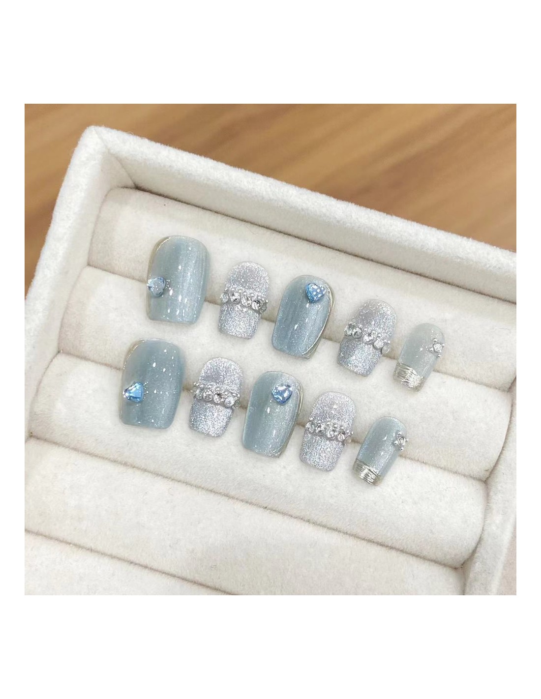 • Conjunto de unhas postiças de pressão artesanais em azul claro.