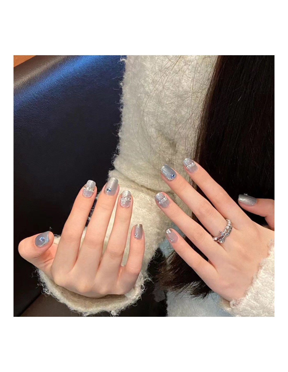 Consiga uma manicure elegante e sofisticada em poucos minutos com este conjunto de unhas postiças de pressão artesanais num delicado tom azul-claro. O seu design simples é realçado por uma delicada linha de cristais azuis, acrescentando um toque de brilho que deixará as suas mãos impecáveis.